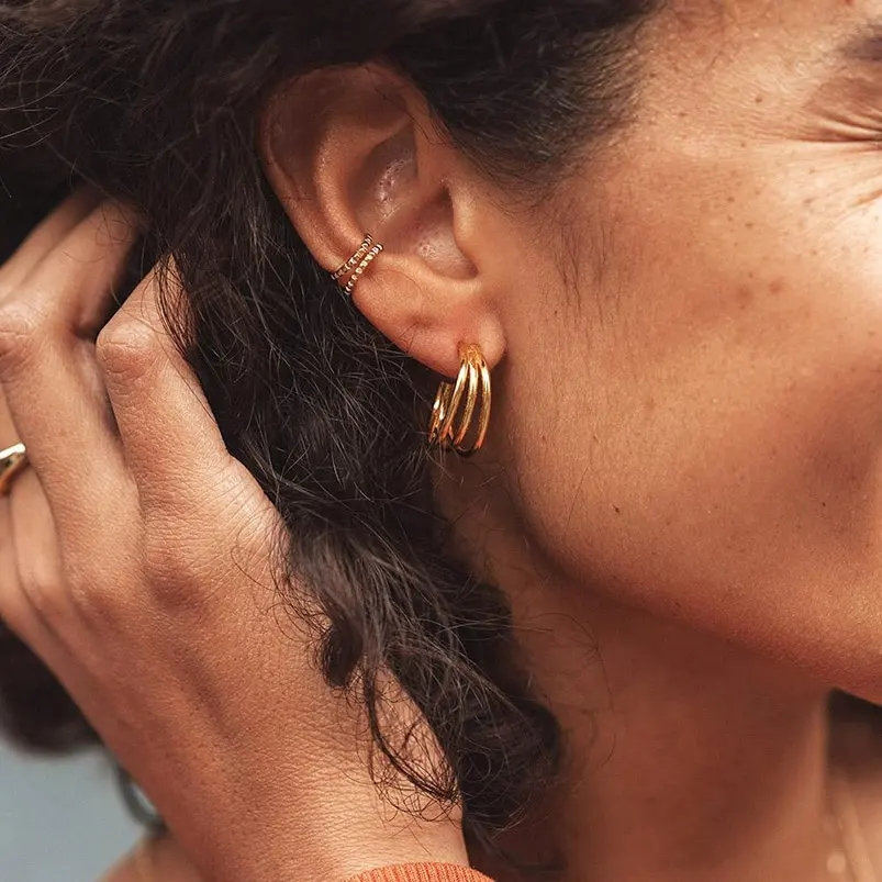 The Capri earrings complete each of your looks. The 3 rings make them classic, but they still attract attention. They were made by Golden Hearts with an elegant 18-carat gold plating.