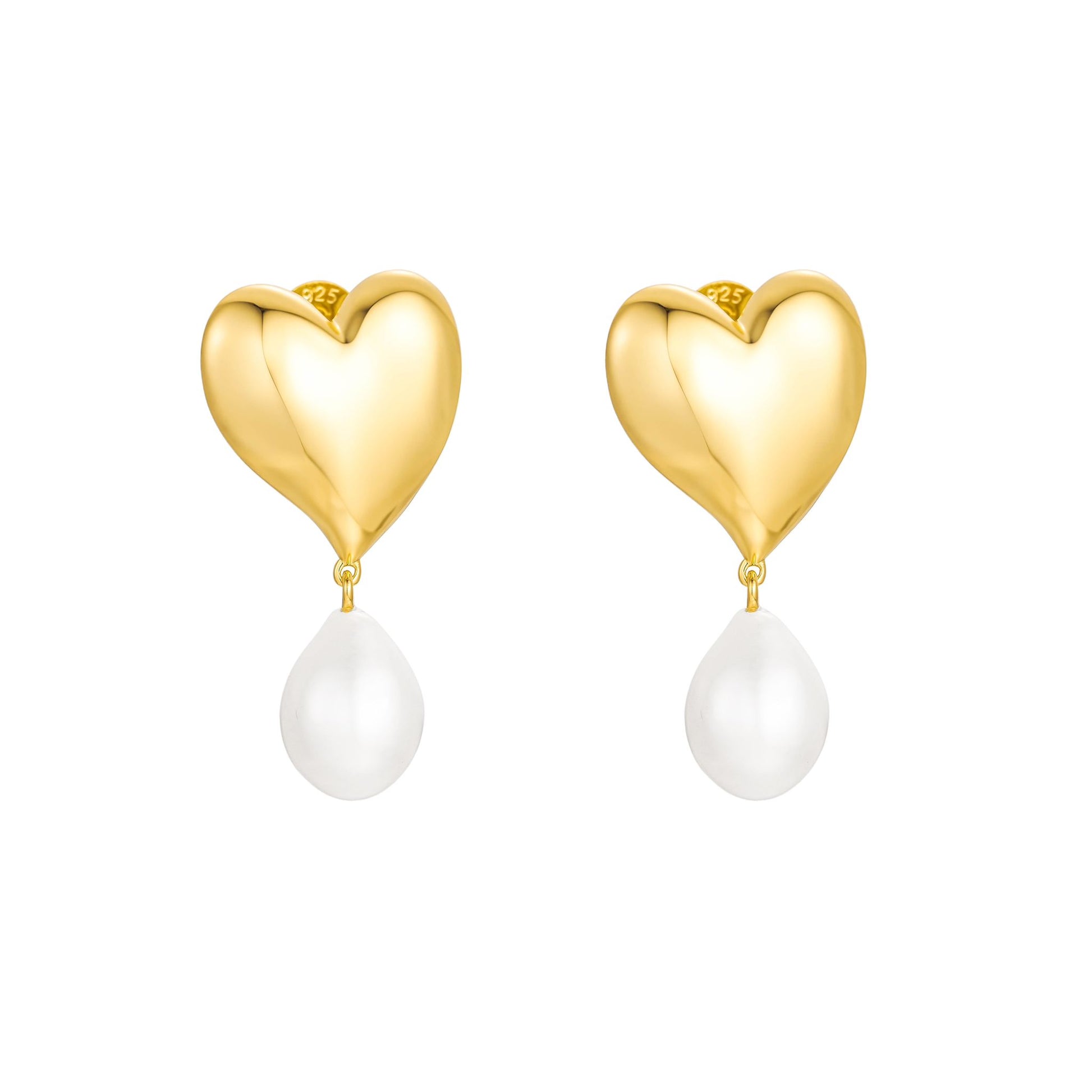 The Paola Gold Vermeil Earrings are a stunning pair of jewelry pieces crafted from high-quality sterling silver and coated with a thick layer of 18k gold vermeil. These heart-shaped earrings combine the elegance of gold with the durability of silver, offering a luxurious and sophisticated look. Each earring features a beautiful freshwater pearl delicately attached, adding a touch of timeless charm. The vermeil process ensures a rich, golden finish that is both long-lasting and resistant to tarnish. Perfect for adding a touch of refined glamour to any outfit, the Paola Gold Vermeil Earrings are an ideal choice for both everyday wear and special occasions.
