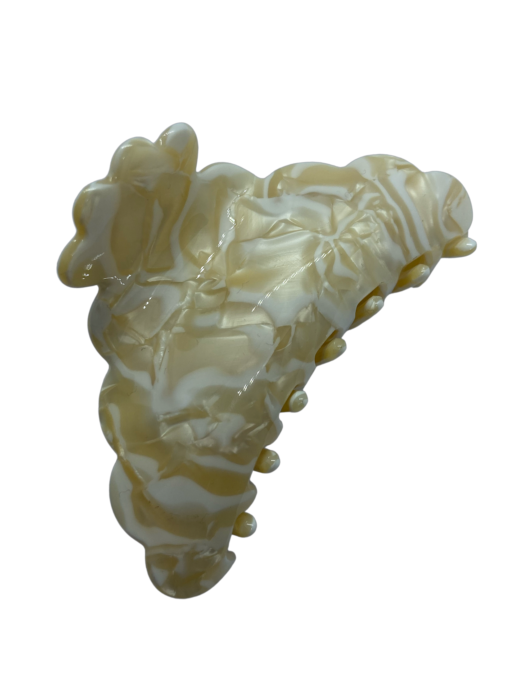 Die Becky Haarklammer gibt es in vielen verschiedenen Varianten. Sie alle haben ein glänzendes Perlmutt-Finish, das für einen exklusiven Look sorgt. Das Acryl hat ein subtiles Muster, das wir Fingerabdruckmuster nennen.