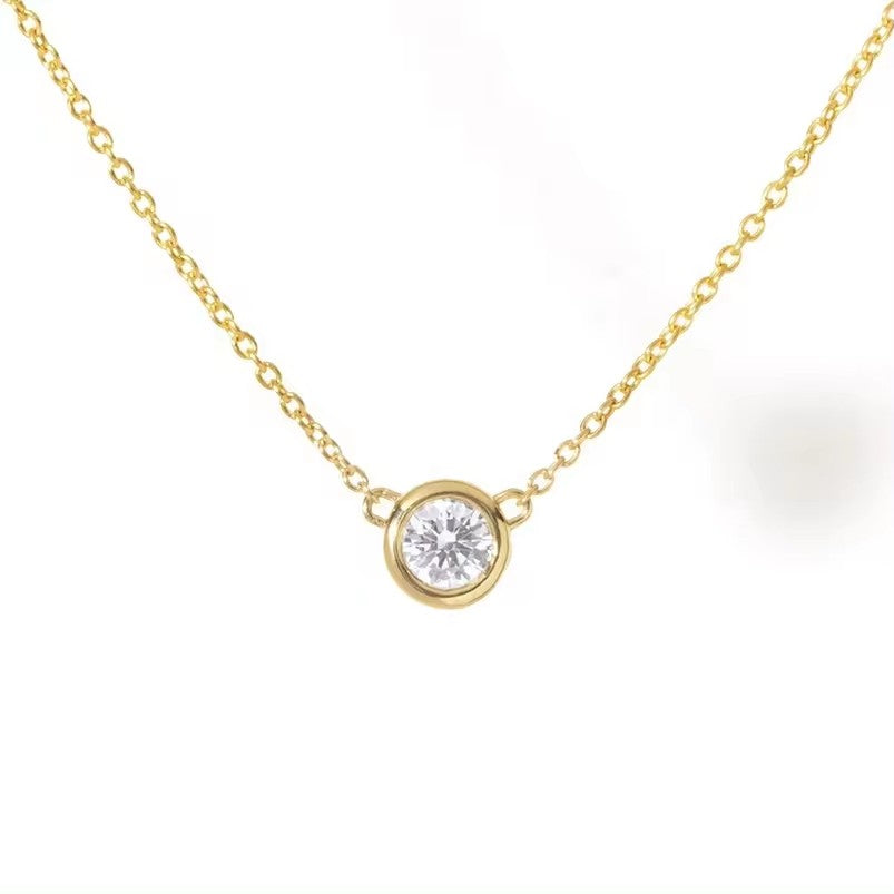 Our Love Necklace is a true classic that never goes out of style. The necklace is made in gold with a round-cut zirconia in a bezel setting. A piece you can hold on to forever.