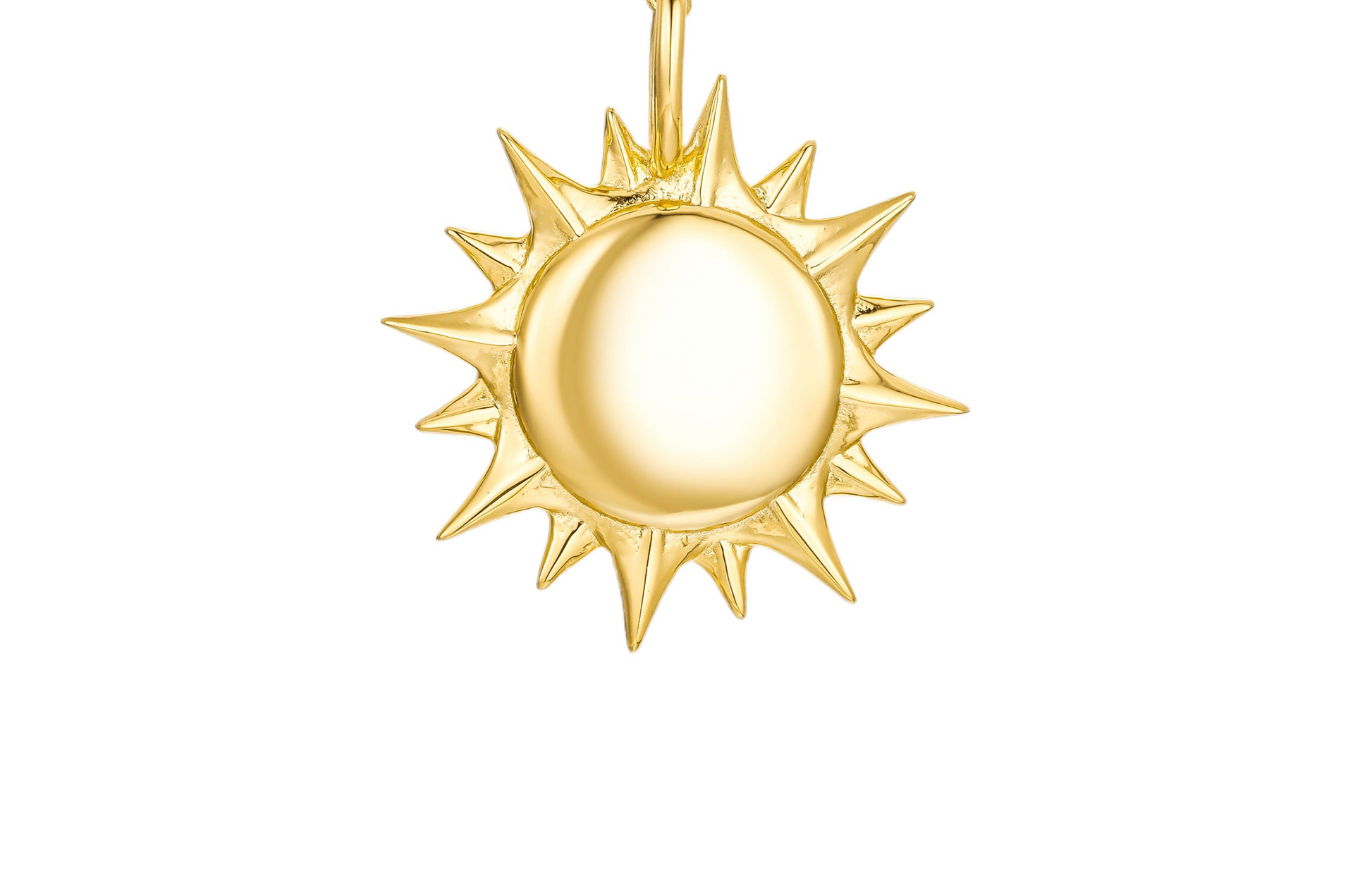 Unser Soleil Anhänger aus 925er Silber mit 18 Karat Vergoldung fängt die Schönheit und Kraft der Sonne in einem filigranen Design ein. Als Symbol für Licht, Wärme und Lebensfreude schenkt dir dieser Anhänger das Gefühl von endlosem Sommer – egal zu welcher Jahreszeit.